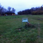 Lige et billede efter de har lavet en jordprøve på grunden.. og med et fint skilt hvor der står kvalitets hus på vej 😀